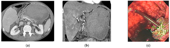 - Hori, Y.; Yoshida, M.; Hayashi, K.; Naitoh, I.; Kato, A.; Miyabe, K.; Kataoka, H. Endoscopic drainage using a lumen-apposing metal stent under contrast-enhanced harmonic endoscopic ultrasonography guidance. Endoscopy 2019, 51, E187–E188. [Google Scholar] [CrossRef]