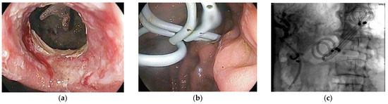 - Sarkaria, S.; Sethi, A.; Rondon, C.; Lieberman, M.; Srinivasan, I.; Weaver, K.; Turner, B.G.; Sundararajan, S.; Berlin, D.; Gaidhane, M.; et al. Pancreatic necrosectomy using covered esophageal stents: A novel approach. J. Clin. Gastroenterol. 2014, 48, 145–152. [Google Scholar] [CrossRef]