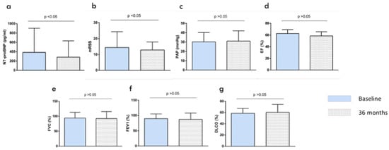 | pulmonary artery pressure (mean ± SD) | 30.2 ± 10.5 | 31.1 ± 11.05 | p = 0.51 | 32.2 ± 12.1 | p = 0.49 |