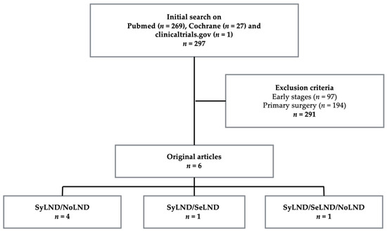 Study selection flowchart. SyLND = systematic lymph node dissection, SeLND = selective lymph node dissection, and NoLND = no lymph node dissection.