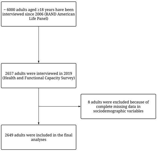 - Pollard, M.S.; Baird, M.D. The RAND American Life Panel: Technical Description; RAND Corporation: Santa Monica, CA, USA, 2017. [Google Scholar]