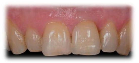 An objective assessment of the esthetic result obtained in anterior-supported implant restoration is usually done using two PES (pink esthetic score) and WES (white esthetic score) indices. All parameters are tested in comparison to the homologous tooth [14,15]. The PES index describes an evaluation of the soft tissue around a single implant according to five parameters: (1) The presence/absence of the mesial papillae; (2) the presence/absence of the distal papillae (3) curvature contours of the buccal gums; (4) height of the buccal gums; (5) curvature of the root/color and the texture of the soft tissues in the buccal aspect of the implant site [15]. The WES index examines five parameters that relate to the evaluation of the reconstruction/visible part: (1) The general shape of the teeth; (2) outline and volume of the clinical crown; (3) color, which includes the evaluation of the hue and value indices; (4) surface texture; (5) transparency and characterization [16].