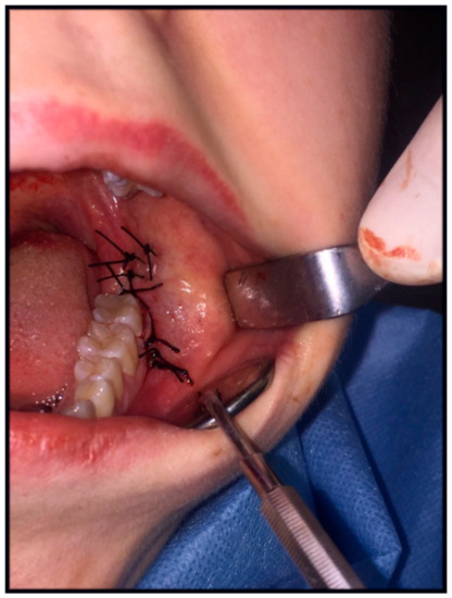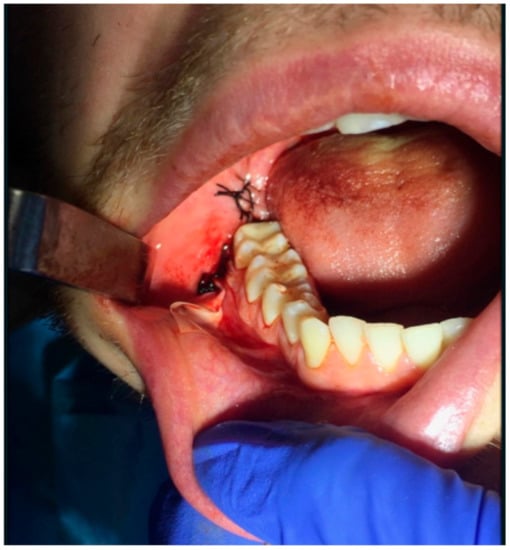 - Maria, A.; Malik, M.; Virang, P. Comparison of primary and secondary closure of the surgical wound after removal of impacted mandibular third molars. J. Maxillofac. Oral Surg. 2012, 11, 276–283. [Google Scholar] [CrossRef][Green Version]