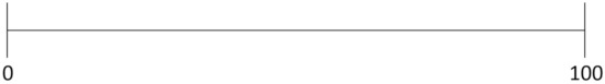 The level of pain was measured using the Visual Analogue Scale (VAS). The first measurement was taken immediately before the surgical removal of the wisdom tooth. Each patient was then given the Visual Analogue Scale VAS (Figure 7), duplicated seven times. This scale ranges from 0 to 100 mm. The patient marked the perception of subjective pain in the evening on the day of surgery and the following days at the same time (12:00 pm) before taking pain medication.