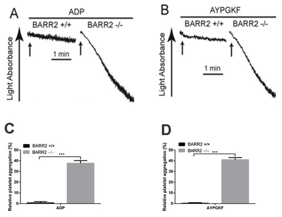 - Li, D.; D′Angelo, L.; Chavez, M.; Woulfe, D.S. Arrestin-2 differentially regulates PAR4 and ADP receptor signaling in platelets. J. Biol. Chem. 2011, 286, 3805–3814. [Google Scholar] [CrossRef]