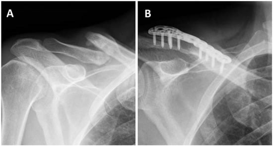 - Der Tavitian, J.; Davison, J.N.S.; Dias, J.J. Clavicular fracture non-union surgical outcome and complications. Injury 2002, 33, 135–143. [Google Scholar] [CrossRef]