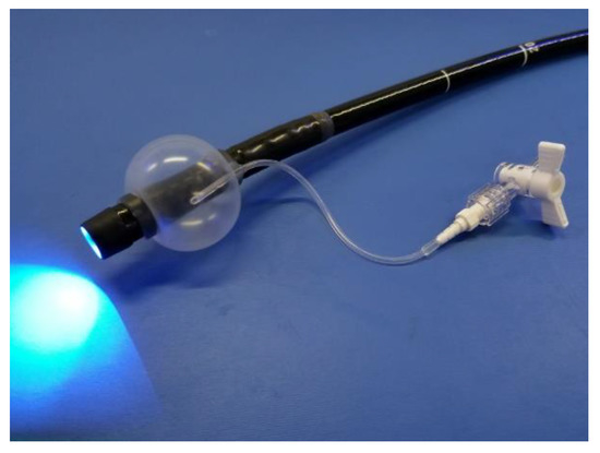 The NBI system (EVIS LUCERA ELITE; Olympus Medical Systems, Co., Ltd., Tokyo, Japan) used in this study consisted of a magnifying gastrointestinal video endoscope (GIF-H260Z or -H290Z), an image processor (CV-290), and a light source (CLV-290). A soft black hood (MAJ1990; Olympus Medical Systems, Co., Ltd.) and an occlusion balloon (Fuji Systems Corporation, Tokyo, Japan) were mounted to the videoendoscope (Figure 1).