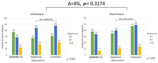- Filson, C.P.; Natarajan, S.; Margolis, D.J.; Huang, J.; Lieu, P.; Dorey, F.J.; Reiter, R.E.; Marks, L.S. Prostate cancer detection with magnetic resonance-ultrasound fusion biopsy: The role of systematic and targeted biopsies. Cancer 2016, 122, 884–892. [Google Scholar] [CrossRef]