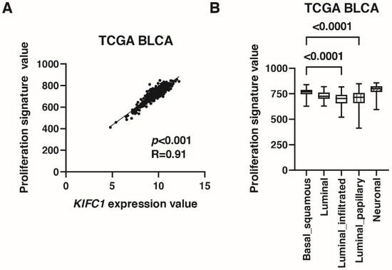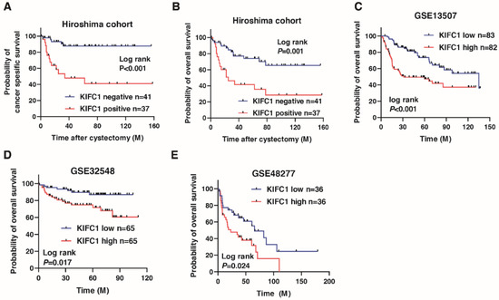 3.2. Prognostic Value of KIFC1 after Cystectomy in BC