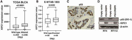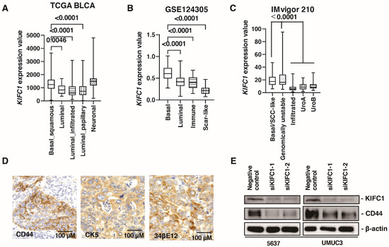 Sekino, Y.; Pham, Q.T.; Kobatake, K.; Kitano, H.; Ikeda, K.; Goto, K.; Hayashi, T.; Nakahara, H.; Sentani, K.; Oue, N.; et al. KIFC1 Is Associated with Basal Type, Cisplatin Resistance, PD-L1 Expression and Poor Prognosis in Bladder Cancer. J. Clin. Med. 2021, 10, 4837. https://doi.org/10.3390/jcm10214837
