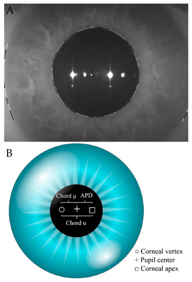 - Park, C.Y.; Oh, S.Y.; Chuck, R.S. Measurement of angle kappa and centration in refractive surgery. Curr. Opin. Ophthalmol. 2012, 23, 269–275. [Google Scholar] [CrossRef]