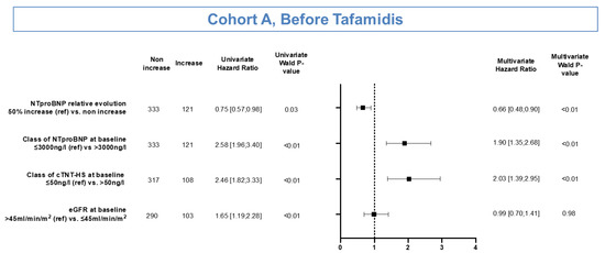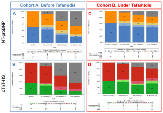 The following are available online at https://www.mdpi.com/article/10.3390/jcm10214868/s1, Table S1: Time intervals of NT-proBNP and cTnT-HS assessments before and after initiating tafamidis in Cohort B (n = 248).