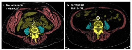 - Van Vugt, J.L.; van den Braak, R.R.J.C.; Schippers, H.J.; Veen, K.M.; Levolger, S.; de Bruin, R.W.; Koek, M.; Niessen, W.J.; IJzermans, J.N.; Willemsen, F.E. Contrast-enhancement influences skeletal muscle density, but not skeletal muscle mass, measurements on computed tomography. Clin. Nutr. 2018, 37, 1707–1714. [Google Scholar] [CrossRef]