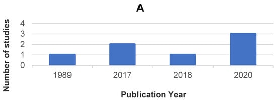 All the articles selected in the qualitative synthesis were divided into two types of studies: five were case-control studies [,,,,], and two were cross-sectional studies [,]. Therefore, we can affirm that 71.5% of the studies belonged to case-control studies and 28.5% belong to cross-sectional studies (Table 4).