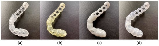 - Sharma, N.; Cao, S.; Msallem, B.; Kunz, C.; Brantner, P.; Honigmann, P.; Thieringer, F.M. Effects of Steam Sterilization on 3D Printed Biocompatible Resin Materials for Surgical Guides—An Accuracy Assessment Study. J. Clin. Med. 2020, 9, 1506. [Google Scholar] [CrossRef]