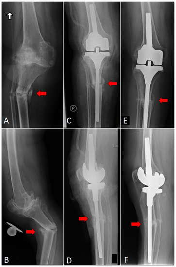 - Canton, G.; Ratti, C.; Fattori, R.; Hoxhaj, B.; Murena, L. Periprosthetic knee fractures. A review of epidemiology, risk factors, diagnosis, management and outcome. Acta Biomed. 2017, 88, 118–128. [Google Scholar]