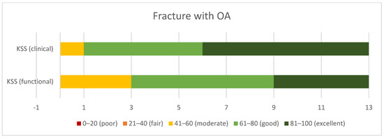 Clinical and functional outcomes in KSS in the group of patients with fracture and coexisting osteoarthritis.