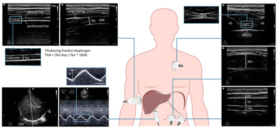- Tuinman, P.R.; Jonkman, A.H.; Dres, M.; Shi, Z.H.; Goligher, E.C.; Goffi, A.; de Korte, C.; Demoule, A.; Heunks, L. Respiratory muscle ultrasonography: Methodology, basic and advanced principles and clinical applications in ICU and ED patients-a narrative review. Intensive Care Med. 2020, 46, 594–605. [Google Scholar] [CrossRef]