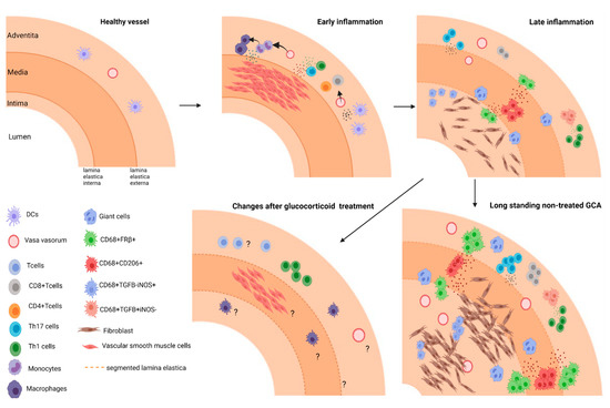 108. Kaiser, M.; Younge, B.; Björnsson, J.; Goronzy, J.J.; Weyand, C.M. Formation of new vasa vasorum in vasculitis. Production of angiogenic cytokines by multinucleated giant cells. Am. J. Pathol. 1999, 155, 765–774. [Google Scholar] [CrossRef]