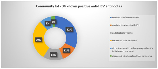 Graphical representation of the status of the 34 persons from the CL with positive anti-HCV antibody results who did not qualify for further treatment.