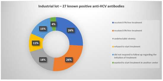Of the 65 HCV-positives from the CL, linkage attempts were documented for 38 people (49.23%, 12 men and 26 women, respectively) and all received treatment. For the remaining 27 patients, we detailed the different motives for not initiating antiviral treatment in Figure 5.