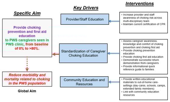 4]. The project team conducted a chart review prior to each clinic to determine which PWS caregivers had not received choking prevention and first aid education. Key interventions are summarized below.