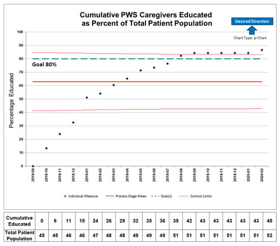 Our primary outcome measure was the percentage of PWS caregivers who received choking prevention and first aid education. Data were reviewed monthly with the QI team and were plotted on a control chart.