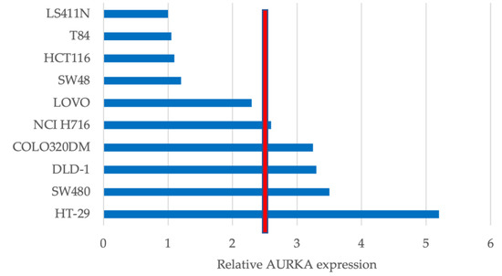 3.1. AURKA Is Differentially Expressed in CRC Cell Lines