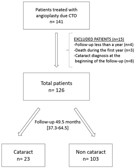 This observational, retrospective cohort study included consecutive patients undergoing PCI for CTO at our center between 2013 and 2017. Exclusion criteria were: previous cataract diagnosis or follow-up <12 months (due to loss to follow-up or death), The study protocol was approved by the ethics committee of our center.