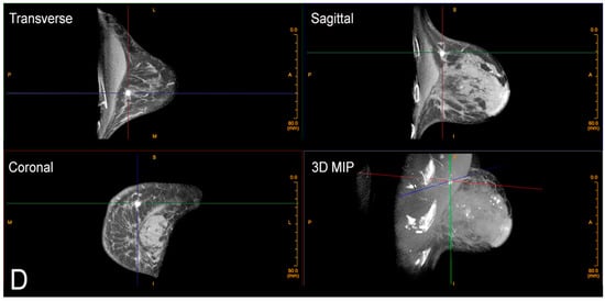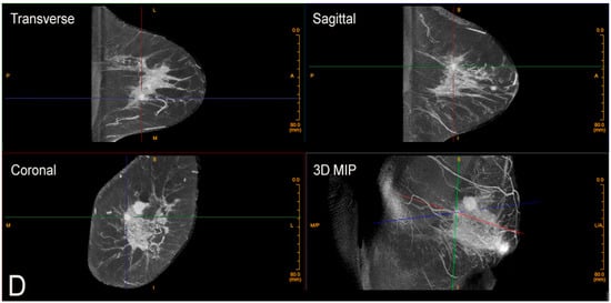 Most screening today involves morphological or structural imaging, looking for a mass, asymmetry, or calcification. MRI is the only widely used functional imaging today using IV contrast to show increased flow associated with a mass or malignant structure. The higher sensitivity of MRI is in large part due to the use of contrast, which adds a functional element to the examination. Contrast-enhanced mammography has been described but is not widely used [41,42]. This was developed in an attempt to gain more information from a mammogram and to make contrast imaging of the breast more available and more affordable than MRI. However, contrast-enhanced mammography still has to contend with compression and distortion and still requires at least two separate views per side.