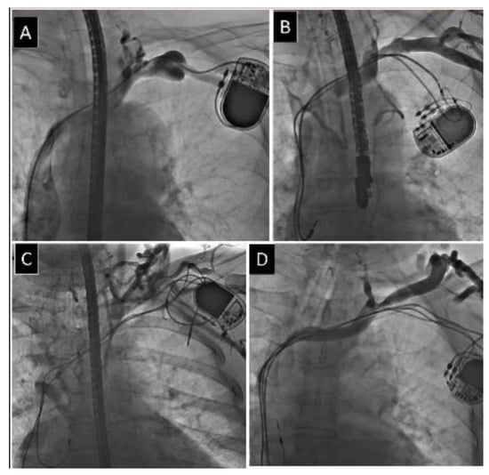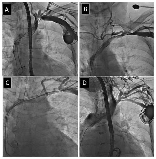 12. Albertini, C.M.M.; Silva, K.R.D.; Leal, J.M.D.M.; Crevelari, E.S.; Martinelli, M.; Carnevale, F.C.; Costa, R. Usefulness of preoperative venography in patients with cardiac implantable electronic devices submitted to lead replacement or device upgrade procedures. Arq. Bras. Cardiol. 2018, 111, 686–696. [Google Scholar] [CrossRef] [PubMed]