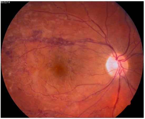 Severe BU results in retinal atrophy with clear vitreous, optic and macular atrophy, diffuse atrophy and gliosis of the retina with sheathed and attenuated cord-like white retinal vessels, which can mimic retinitis pigmentosa [].