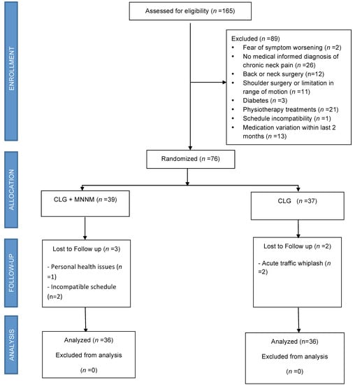 Consort flow diagram. CLG = cervical Lateral Glide; MNNM = median nerve neural mobilization.