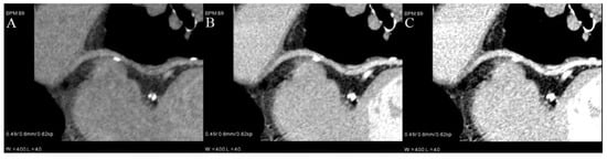 Moreover, they can be used to salvage examinations with suboptimal vessel enhancement [9,13] (Figure 3) or to asses pulmonary and coronary arteries in a single examination without an extra dose of contrast—making each coronary CTA rule out examination.