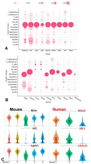 Human pleural effusion or tumor biopsy in patients were processed by Princess Margaret Genomic Centre, University Health Network (UHN), following the standard protocol (www.pmgenomics.ca; accessed on 31 May 2021). Single cells were prepared from pleural effusion of MESO patients, and tumor spheroids were removed similarly as mouse samples. Tumor biopsy tissues were cut into small pieces and tissue dissociation protocol, published previously at the Princess Margaret Genomic Centre, was then followed [28,29].