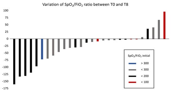 3.3. Factors Associated with Changes in SpO2/FiO2 during Transport