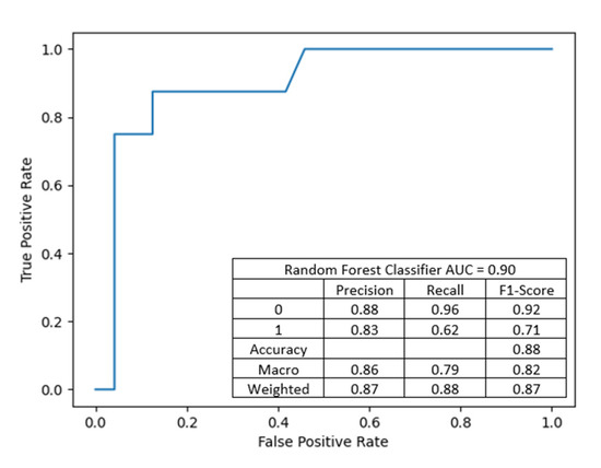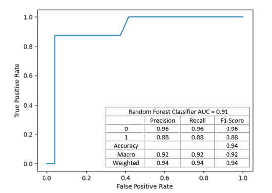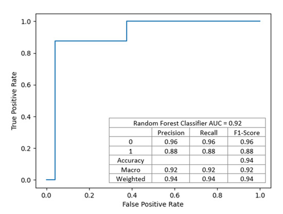 This model achieved an accuracy of 93.75%, precision of 0.9375, and recall of 0.9375 and achieved slightly better discriminant power than the previous one (presented in Figure 6).