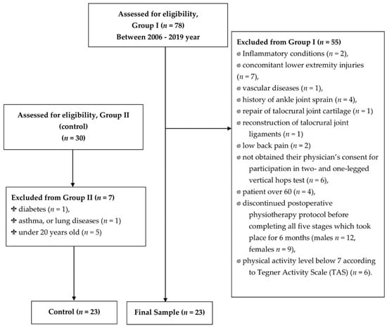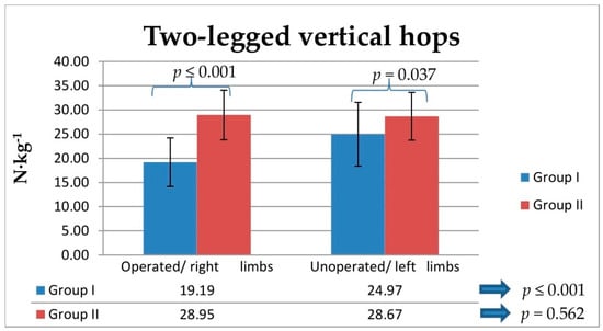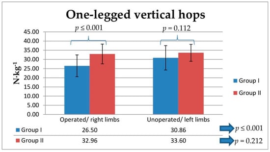 - Królikowska, A.; Czamara, A.; Reichert, P. Between-Limb Symmetry during Double-Leg Vertical Hop Landing in Males an Average of Two Years after ACL Reconstruction is Highly Correlated with Postoperative Physiotherapy Supervision Duration. Appl. Sci. 2018, 8, 2586. [Google Scholar] [CrossRef]
