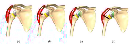 - Hamilton, M.A.; Diep, P.; Roche, C.; Flurin, P.H.; Wright, T.W.; Zuckerman, J.D.; Routman, H. Effect of Reverse Shoulder Design Philosophy on Muscle Moment Arms. J. Orthop. Res. 2015, 33, 605–613. [Google Scholar] [CrossRef]