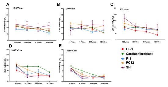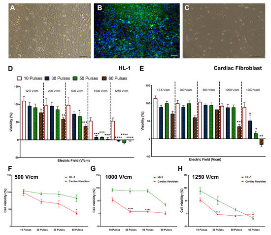 3.1. Reduction in Cell Viability Is Related to Electric Field Strength