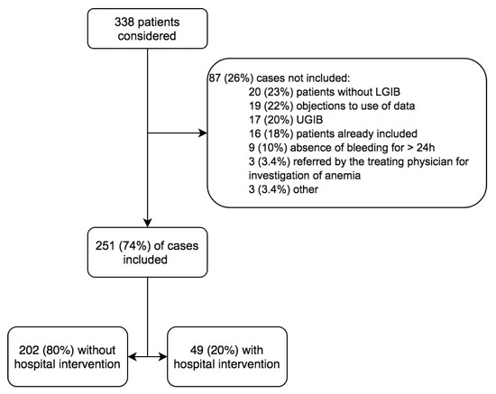 Flowchart. LGIB: lower gastrointestinal bleeding; UGIB: upper gastrointestinal bleeding.