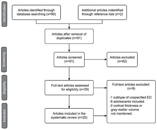 In the present review, only studies in adults were selected because the morphological and volumetric changes that occur in the cerebral cortex in the context of eating disorders follow significantly different patterns between adolescents and adults.