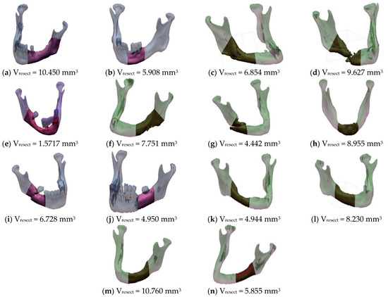Using the functions of the Geomagic software, the volume of the resected area (Vresect) was determined for each of the 14 examined patients (Figure 8).