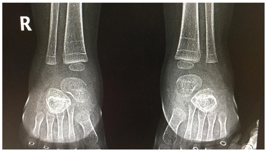 After GT, all other patients presented with fever, vomiting, lack of appetite, mild thrombocytopenia and liver enzyme elevation, but only in two patients did the dose of prednisone need to be increased and require prolonged treatment (see Table 1—Patients 1NZ–5NZ and 6ZN). Probably due to a longer (5 months) corticosteroids treatment period, one of the patients presented with demineralization fractures (Figure 1), for which treatment was recommended with supplementary vitamins (C, D) and minerals (calcium, magnesium, phosphorus).