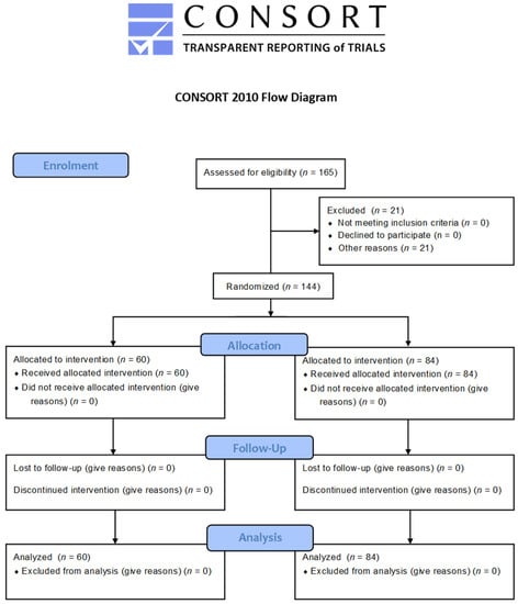 The clinical-control observational study involved 144 patients; 94 girls and 50 boys participated in the study. Patients were divided into two groups (Figure 1):