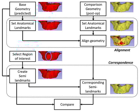 After landmarks placement, the anatomical surfaces are aligned to permit comparisons. Therefore, it is necessary to assure accuracy and precision in the alignment of the structures under consideration. Alignment can be done for quantifying the changes for the same patient post-surgery or for comparing the post-surgery changes among different patients.