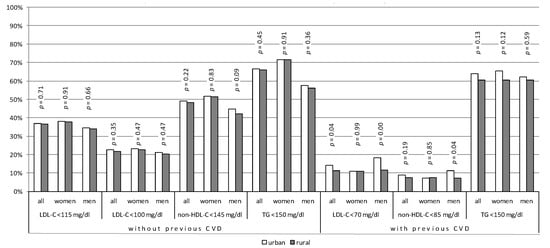 Due to health inequities between urban and rural regions, place of residence remains one of the essential determinants of health []. Nevertheless, it is not currently known whether urban–rural differences exist in the prevalence of CV risk factors and the achievement of therapeutic goals in Poland and some other CEE countries.