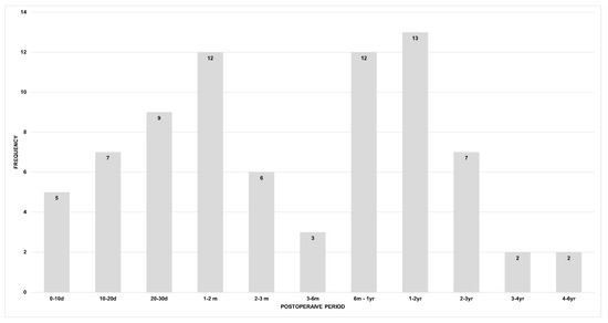 Frequency of postoperative recurrence (d: day; m: month; yr: year).