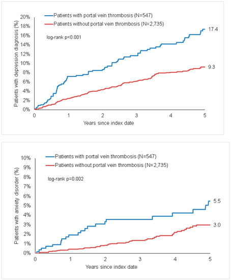 Association between portal vein thrombosis and the 5-year-incidence of depression and anxiety disorders.