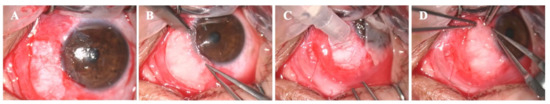 - Ma, D.H.-K.; Wang, S.-F.; Su, W.-Y.; Tsai, R.J.-F. Amniotic membrane graft for the management of scleral melting and corneal perforation in recalcitrant infectious scleral and corneoscleral ulcers. Cornea 2002, 21, 275–283. [Google Scholar] [CrossRef] [PubMed]